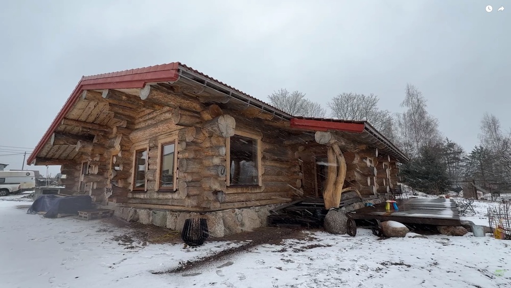 Иван заказывает у нас уже третий объект и решил получить дом, максимально приближенный к природе. Он сам подбирал бревно и разрабатывал планировку. В результате здание получило площадь около 200 кв.м в один этаж и со множеством крупных одностворчатых окон.