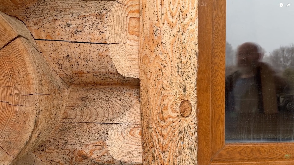 Иван не успел воспользоваться услугами по покраске деревянного дома, поэтому бревно потемнело, а на его поверхности появились точки. Такой эффект вызван большим количеством пыли, воздействующим на поверхность.