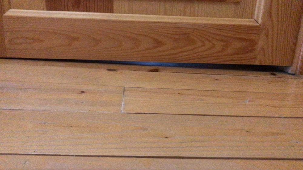 Кроме работ по перекрытию, мы обратили внимание на то, как криво стоят межкомнатные двери. Мы их демонтировали, выровняли коробки и установили обратно.