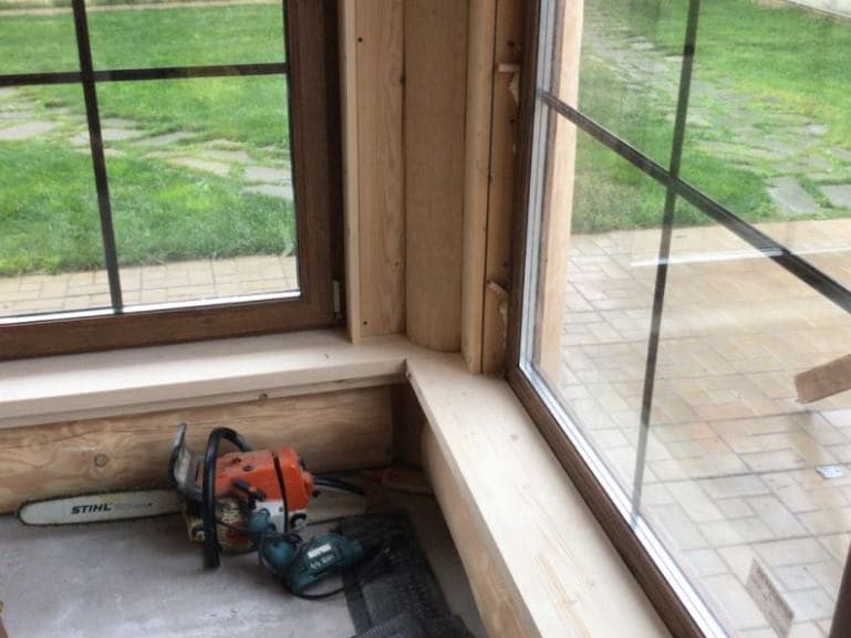 Изготовление каркаса, монтаж и отделка окон на веранде в срубе