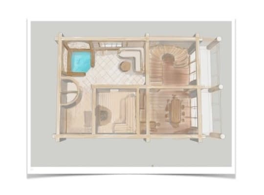 После этого Инженер разрабатывает размещение коммуникаций (при разработке дизайна сруба бани или дома коммуникации часто скрыты в стены, это эстетично и не нарушает общей стилистики интерьера), а также расстановку сантехнических приборов и электрики.