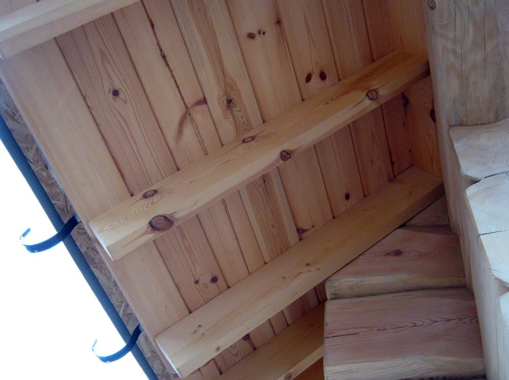 Все остальные работы можно объединить в один пункт – отделка. Необходимость их проведения, объем и перечень будет зависеть только от размеров бани и количества этажей. Например, если вы решили сделать двухэтажную баню из бревна под ключ, вам обязательно придется делать лестницу, межэтажное перекрытие и, возможно, балкон. При строительстве одноэтажной бани из бревна в проведении этих работ необходимости нет.