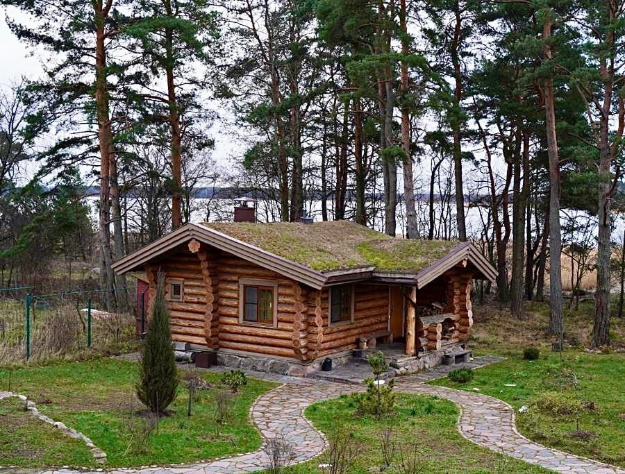 Особый вид построек для клиентов с соответствующими предпочтениями. Такие здания имеют мощную стропильную конструкцию, поверх которой засыпан грунт. Он обеспечивает естественную защиту от осадков, тепло- и шумоизоляцию.