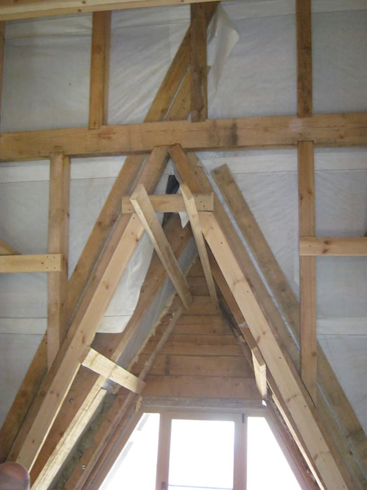 Провести ремонт стропильных конструкций крыши требуется при их ослаблении. Проблему провоцирует использование некачественной доски, интенсивное воздействие влаги и насекомых-вредителей. Также вероятно разрушение из-за агрессивных внешних факторов: огня, щелочей и кислот.