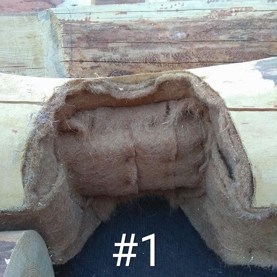 Какие материалы использовать для утепления? Мы рекомендуем лен, джут или льно-джут. Синтетические материалы мы не используем. Из натуральных также есть мох, но он не очень эффективный: через некоторое время он нередко превращается в труху. Мох сложно выбрать – он бывает разный, нужно знать нюансы, типы мха. К сожалению, сегодня утеряны знания по тому, как его выбирать, заготавливать и т.п.
