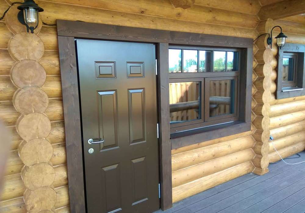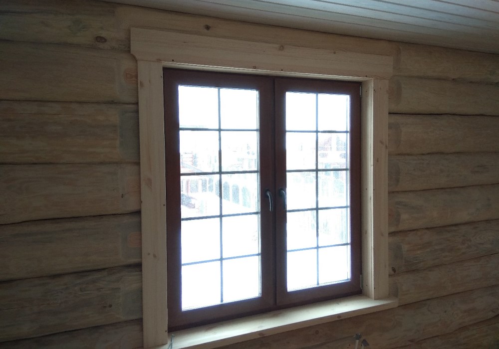 Как выполнять монтаж окон и дверей, не дожидаясь усадки? Они должны крепиться к независимому каркасу или сами быть независимыми. Например, если окно высотой 2 метра, рассчитываем на усадку в 6%, то проем должен включать высоту окна + 12-15 см. Блок нужно монтировать так, чтобы на него не давило верхнее бревно, и чтобы он стоял достаточно плотно (крепится к обсадным брускам). Аналогично ведется монтаж дверей. Если перед рубкой делается проект, то в нем это уже все учтено.