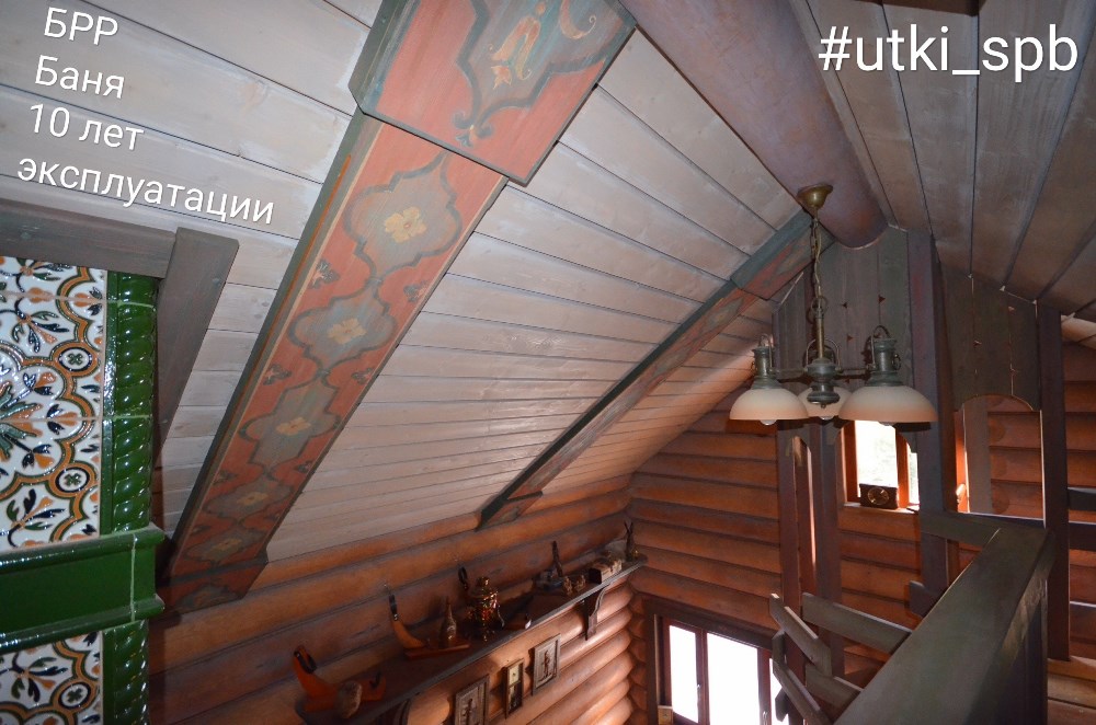 Окраска сруба внутри снимает многие ограничения, присущие окраске фасадов, т.к. в помещениях практически нет вредного воздействия ультрафиолета и других атмосферных явлений, от которых должны защищать краски для наружных работ. Если у заказчика нет других предпочтений, мы стараемся использовать лессирующие составы, которые подчеркивают структуру древесины. Укрывные краски, на наш взгляд, не очень подходят для окраски помещений.