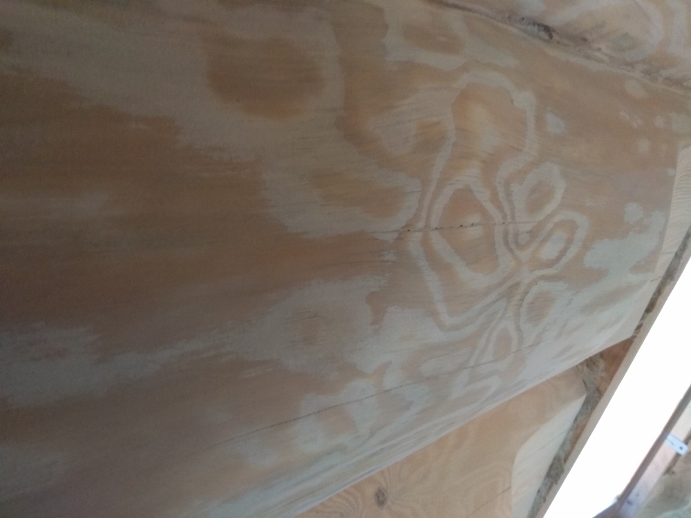 - Деформация полов из-за жесткого крепления и неучтенной усадки. В среднем толщина межэтажного перекрытия составляет 35 см, и она тоже подвержена усадке! Когда сруб садится на 4%, то на этой толщине будет усадка на 1,5-2 см. Если потолок будет жестко закреплен к штробе (низ перекрытия – это потолок 1 этажа, верх перекрытия – чистовой пол 2 этажа), то края пола будут подламываться. В случае с деревянным полом из массива это будет не очень заметно, а если уложена плитка, то ее будет ломать. Что делать? Крепить пол в штробы с учетом усадки. Если этого не учесть, то когда через 1-1,5 года вылезут подобные дефекты, для их устранения придется перебирать перекрытия.