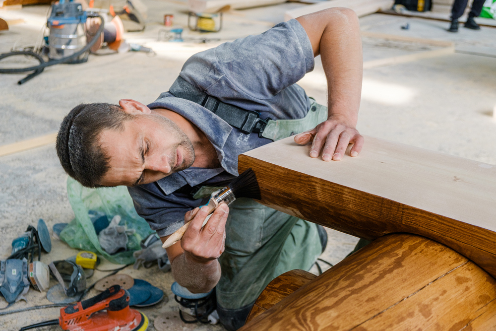 - конкурс отделочников, которые должны были отшлифовать и покрасить скамейки, изготовленные плотниками накануне, а также показать свое мастерство в нанесении герметика по технологии «теплый шов».