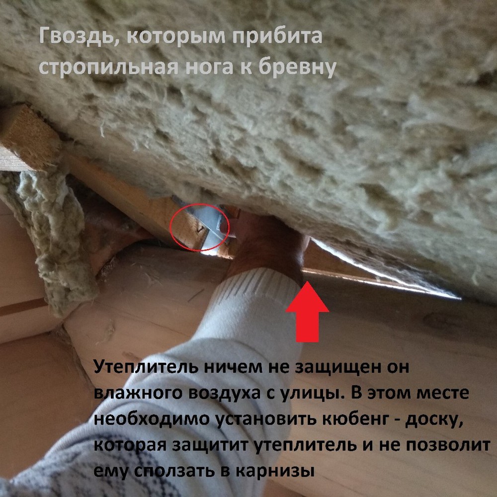 Если нижняя пленка (пароизоляционная) уложена некачественно, то пары воздуха попадают в утеплитель, он сыреет и перестает выполнять свою функцию. Зимой вся влага замерзает прямо в утеплителе, а при первой же оттепели начинает таять и стекать по внутренним (!) стенам сруба. Думаю, не стоит акцентировать внимание на том, что влажный утеплитель – основная причина гниения деревянных элементов крыши, что может привести к ее разрушению. Устранить такую неисправность можно только поменяв или отремонтировав пленку. Для этого необходимо выполнить демонтаж потолочной доски, что весьма трудозатратно и дорого, так как доску очень редко удается сохранить.
