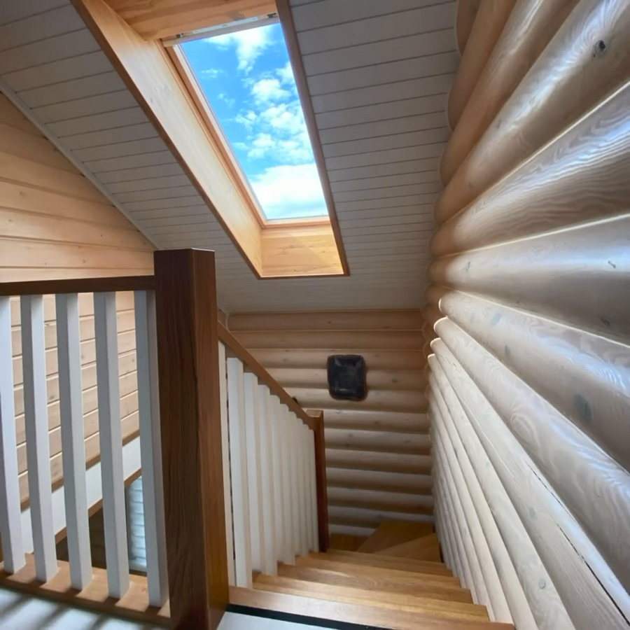Окраска бревна внутри дома предполагает естественную защиту поверхностей за счет окон, крыши и стен. На окрашенные участки не садится уличный мусор, им не угрожает дождь.