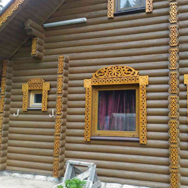 - Окрашивание всей поверхности сруба в целевой цвет. Количество слоев зависит от степени подготовки основания и параметров древесины. Обычно выполняется 2-3 прохода.
