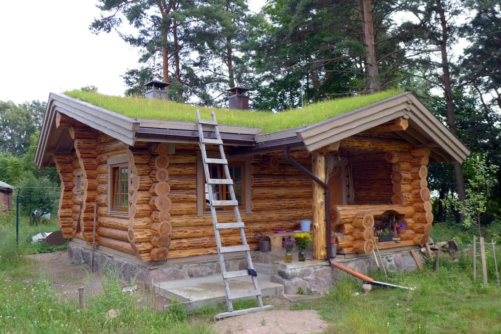 Деревянный сруб – уникальное строение. И хотя современные срубы можно оснастить любым типом кровли без вреда для его внешнего вида и функциональных качеств, одним из наиболее интересных и оригинальных вариантов является устройство земляной крыши. Такое решение пришло к нам из Норвегии. Там часто использовали обычный грунт в качестве основного защитного материала.