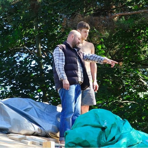 Он вместе с плотниками участвовал в постройке дома и бани: чертил, работал пилой и топором. Поскольку легких путей Владимир не искал, его первым строением стала баня с земляной кровлей, которая эксплуатируется с 1999 года и до сих пор не нуждалась в ремонте.