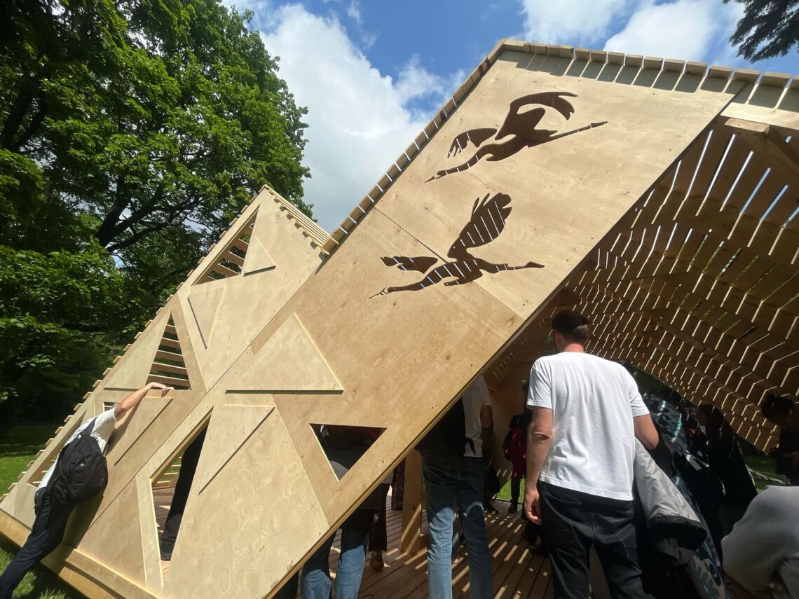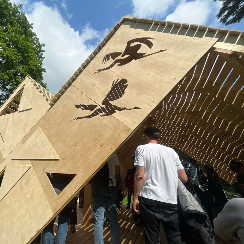 В команде Антона были студенты Московского университета им. Строганова. Несколько дней под его руководством ребята проектировали и создавали чертежи конструкции, а затем пилили, строгали и шлифовали беседку, которая, вместе с объектами других мастеров, украсила парк Лесотехнической академии в Санкт-Петербурге.