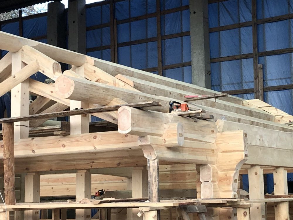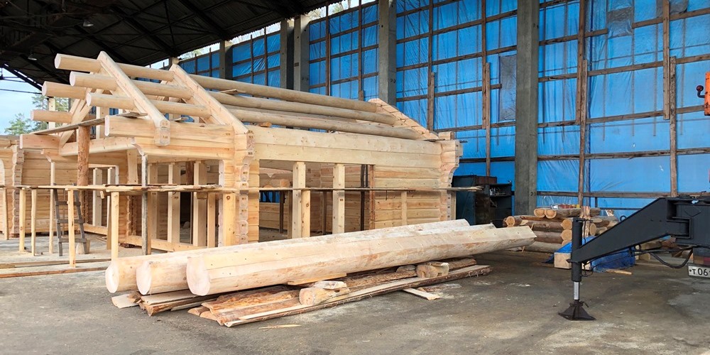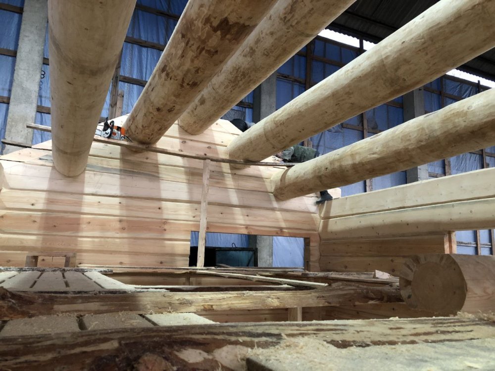 Однако уже после того, как сруб был готов к разборке и отправке, было принято решение изменить диаметр слег и коня. Пришлось разбирать фронтоны, демонтировать уже смонтированные бревна и менять их на более толстые.