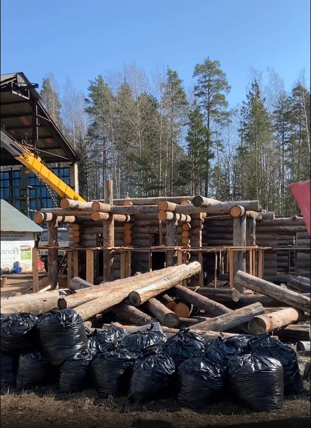 - На площадке еще на закончен сруб из бревна кело. До конца месяца нам предстоит его дорубить, разобрать и увезти на участок клиента, чтобы прямо на его месте расположить сцену и фудтраки.