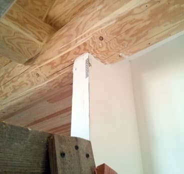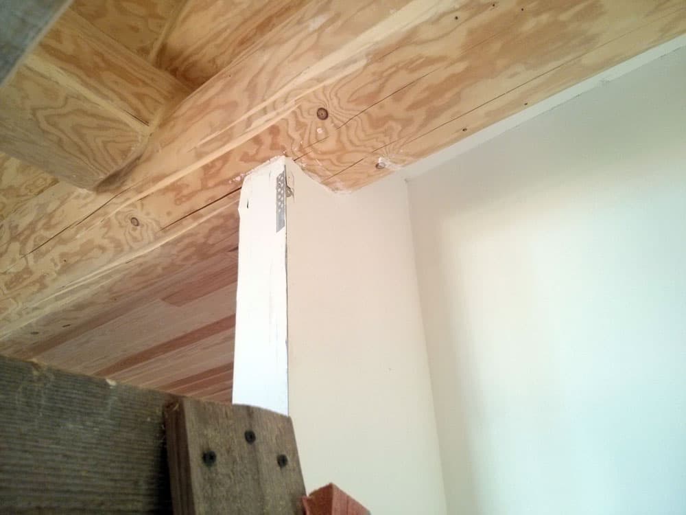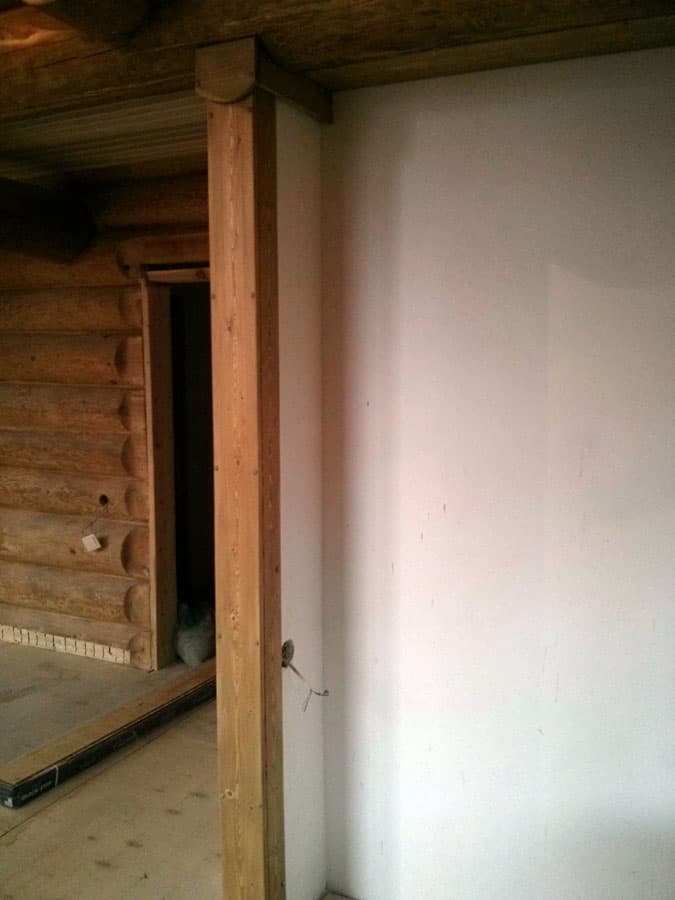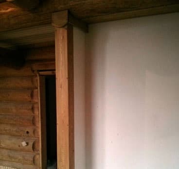 У клиента в Вырице после изготовления каркасов в бревенчатом доме, каркасы стали трещать – не было необходимого зазора для усадки. Решение было радикальным – частичный демонтаж каркаса, подрезка и изготовление декоративного наличника.