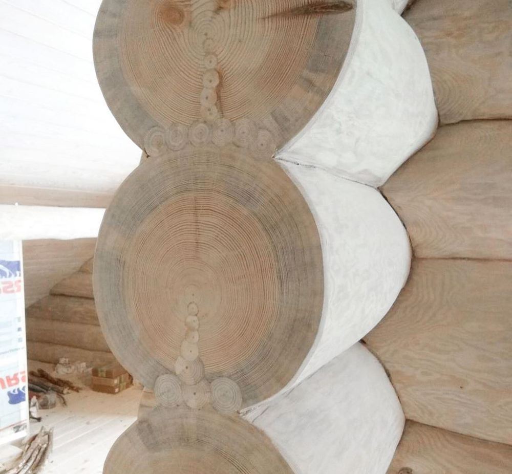 И вот очередной ляп, связанный с торцами бревен. Посмотрите на первое фото ниже: этот паз уж очень похож на дупло. В нормально срубленном доме такого быть не должно! Как оно появилось, не знает никто. Может, дрогнула рука у плотника или что-то еще… К счастью, есть отличное решение этой проблемы, которое мы использовали уже на разных объектах.