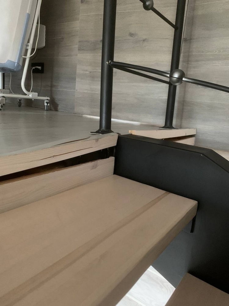 К счастью, проблему удалось устранить. Команда «УтКи» снова пришла на выручку: мы подкорректировали крепление, заменили поврежденные элементы пола, добавили опоры под перила и собрали все заново.