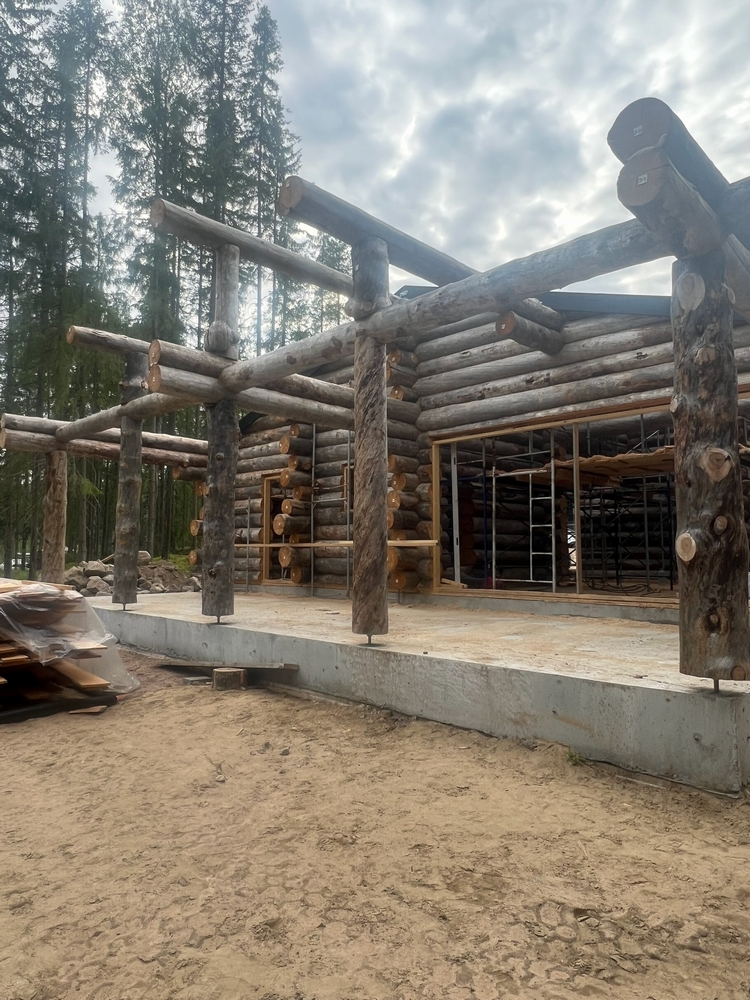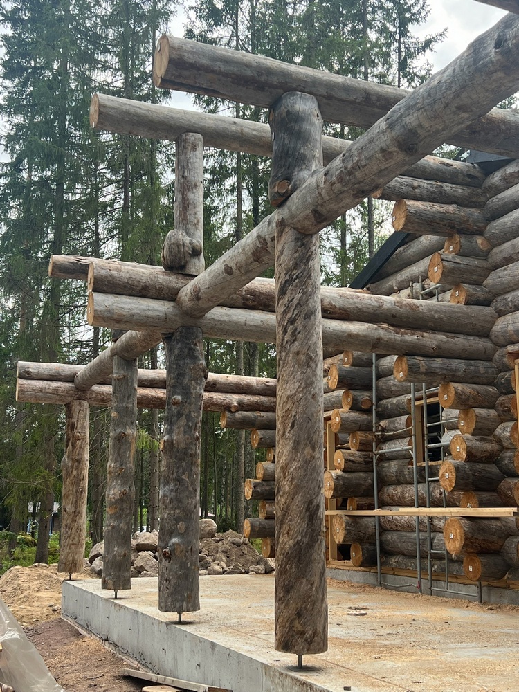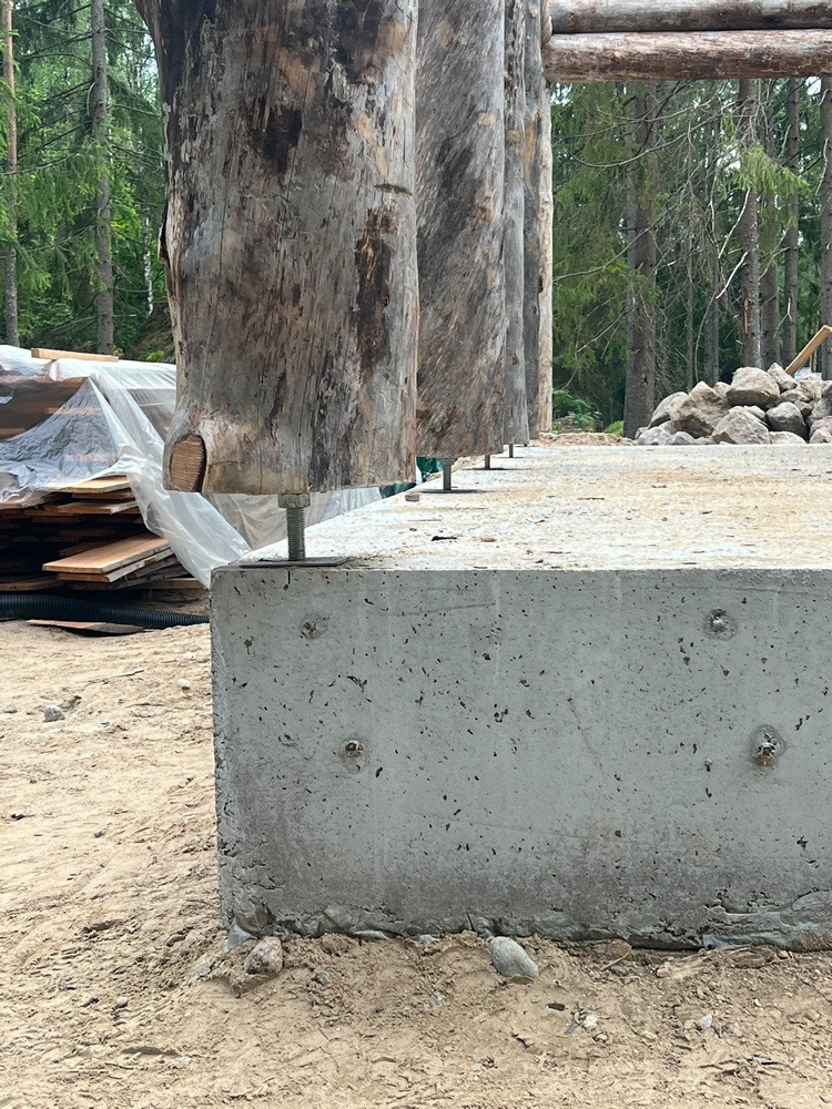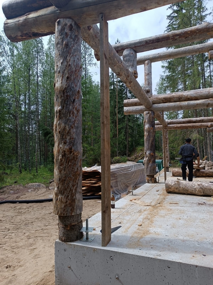 Не так давно компания «УтКи» построила баню из сосны кело под Выборгом. Проектировали и рубили ее тоже мы, а вот при сборке на участке заказчика оказалось, что из-за нестыковок в чертежах полы на террасе были залиты на 20 см ниже, чем общий уровень пола.