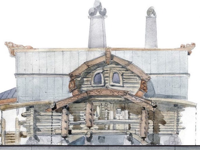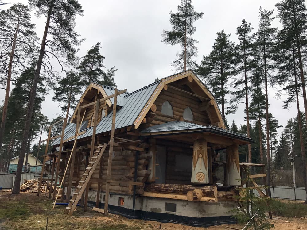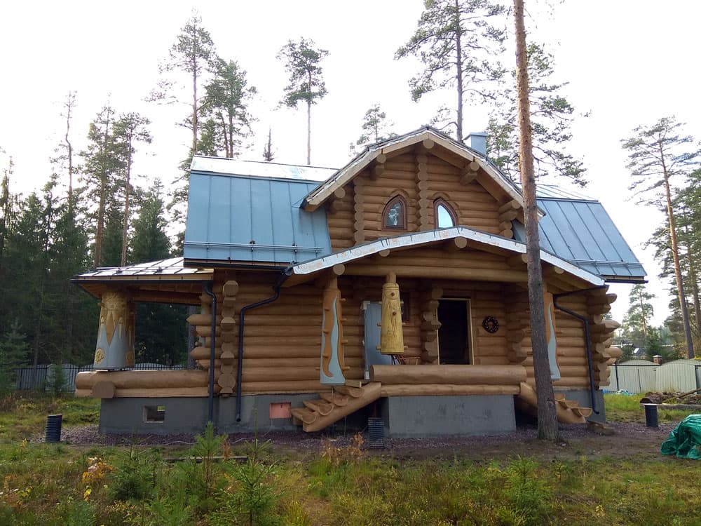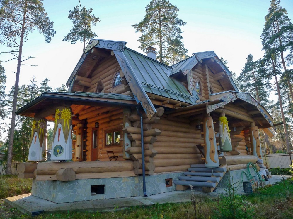 Этот двухэтажный сруб из круглого бревна в духе русского терема мы построили октябре 2016 года в поселке Вырица Ленинградской области. Для сруба использовали сосну диаметром 28-32 см, рубили в канадскую чашу. Общая площадь дома с учетом крылечек составила 140 кв.м. Подробности проекта можно увидеть здесь.