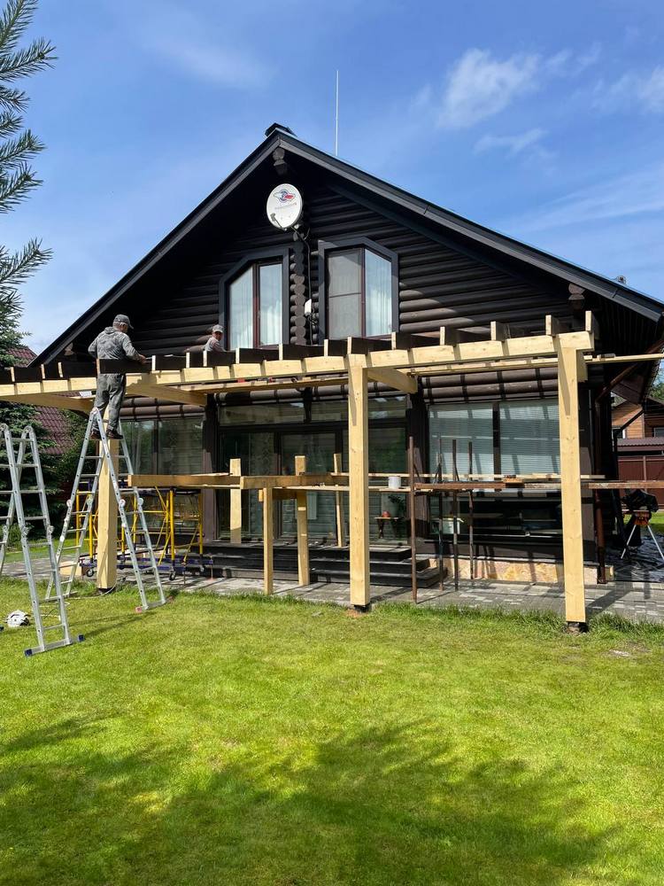 А отличным решением организовать комфорт без оглядки на погоду будет построить навес или открытую террасу. Так считают и наши заказчики!