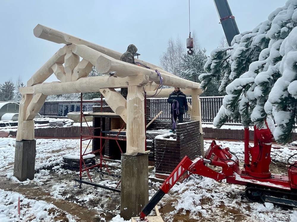 К нам в офис пришел заказчик с задачей построить на участке сруб для барбекю по технологии post&beam – это было все техническое задание. Мы разработали 2 раздела проекта – «Архитектурные решения» и «Конструктив». Это позволило собрать сруб на нашей площадке, после чего перевезти и возвести его на участке.