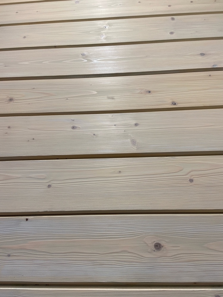 Отделка каркасного дома снаружи включала создание полноценного теплового контура. Каркас заполнен качественным утеплителем и обшит имитацией бруса. Последний отшлифован и окрашен в несколько слоев.