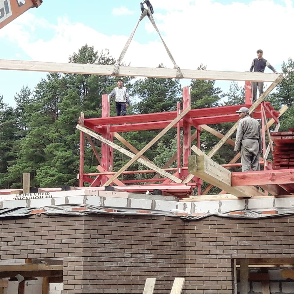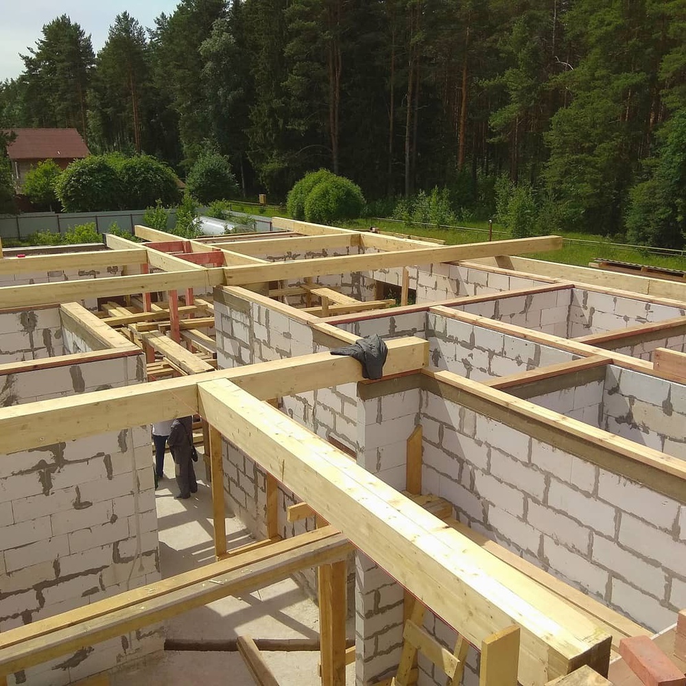 К нам обратился наш бывший заказчик, которому мы успели построить дом из лафета. Он приобрел участок с недостроенным зданием и собрался его реконструировать. Первый этаж был каменным, а второй решили делать каркасным.