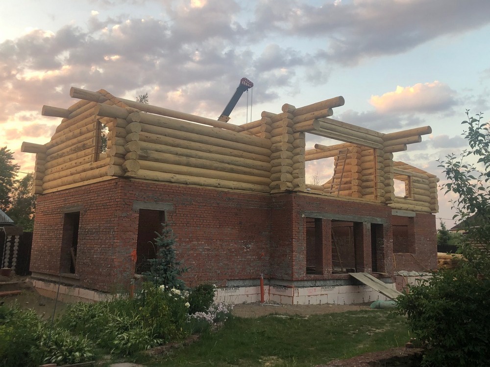Здесь мы представляем вам не совсем стандартную работу по возведению сруба из круглого бревна. По желанию заказчика мы построили сруб на уже существующем доме из камня. Это нестандартное решение, но у нас довольно большой опыт в создании комбинированных домов. Такой подход позволил создать красивый и прочный дом, избежав строительства с нуля.