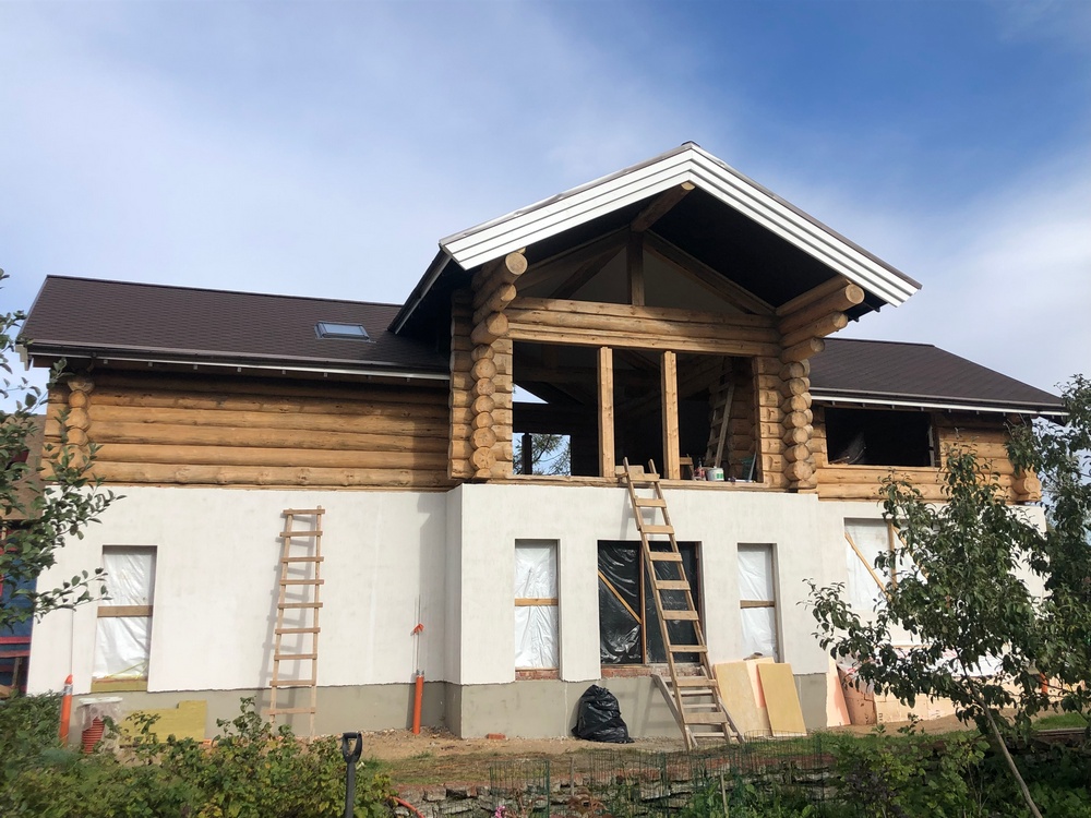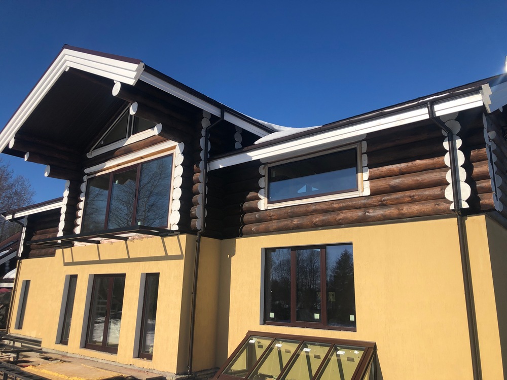 В завершении мы организовали окраску дома из бревна снаружи и изготовили обсадные коробки для окон. Прочие действия по оштукатуриванию каменной части, разводке инженерных сетей и внутренней отделке заказчик выполнял сам. Судя по тому, что после строительства второго этажа он заказал у нас строительство бани, заказчик остался доволен работой, о которой мы обязательно расскажем.